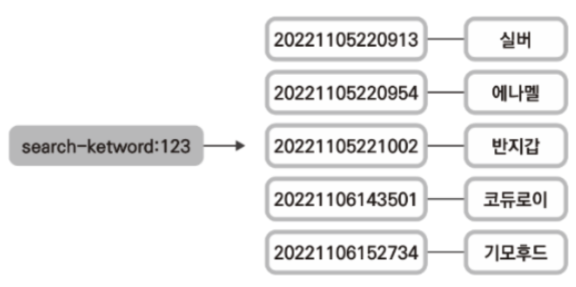 최근 검색 기록 - sorted set