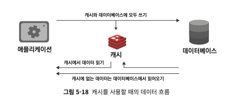 - 애플리케이션이 캐시 먼저 확인하여 데이터 있으면(캐시 히트) 읽고 없으면(캐시 미스) 원본 저장소에서 읽고 캐시에 저장한다.