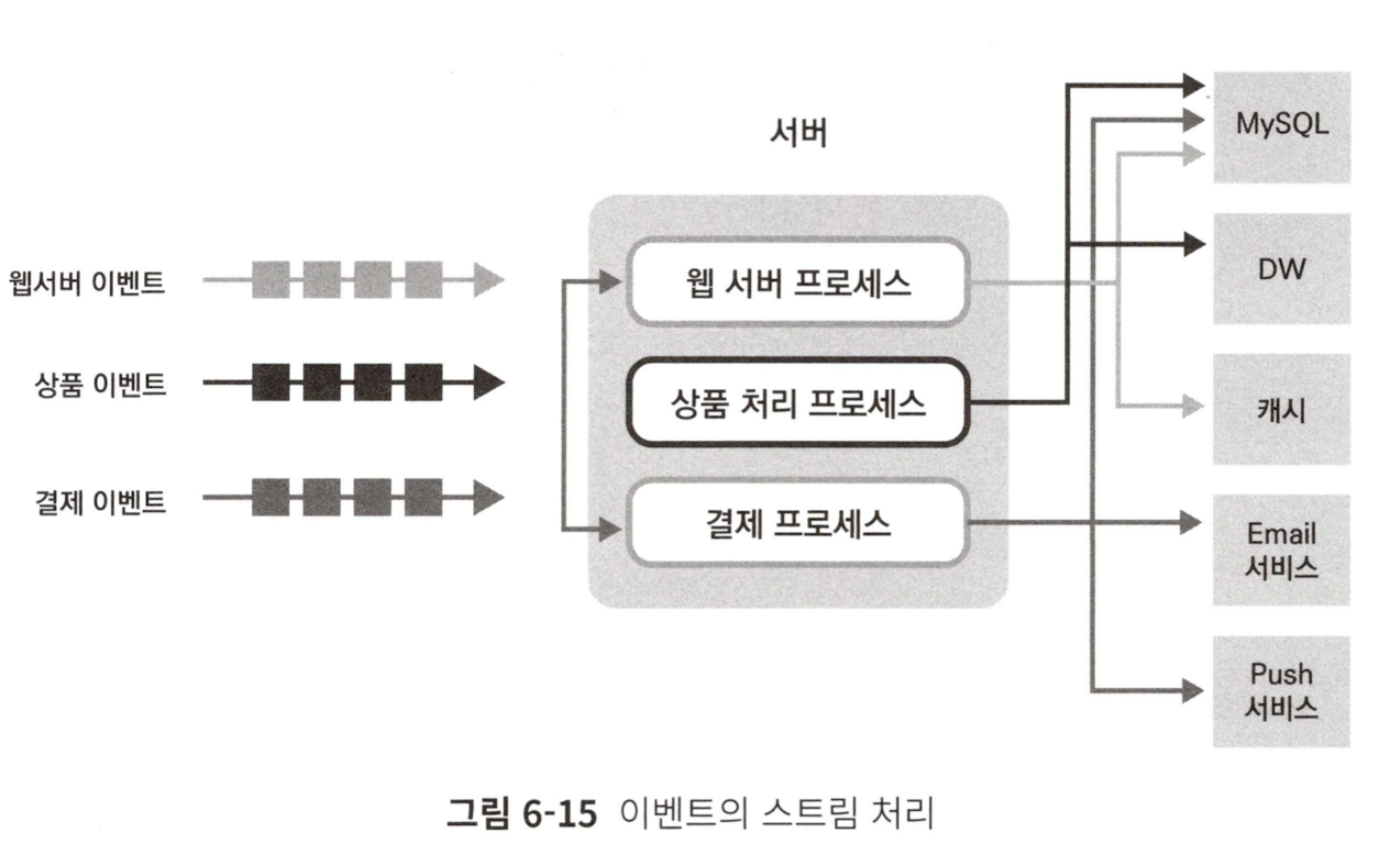 - 이벤트 스트림: 스트림의 특정 저장소에 메시지를 보내면 메시지가 필요한 여러 구독자들이 스트림에서 pull하면 돼서 구독자 별로 중복 푸시 안 해도 된다.