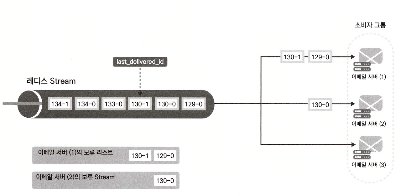 1) (integer) 2 # 소비자 그룹(EmailGroup)에서 pending 메시지 2개