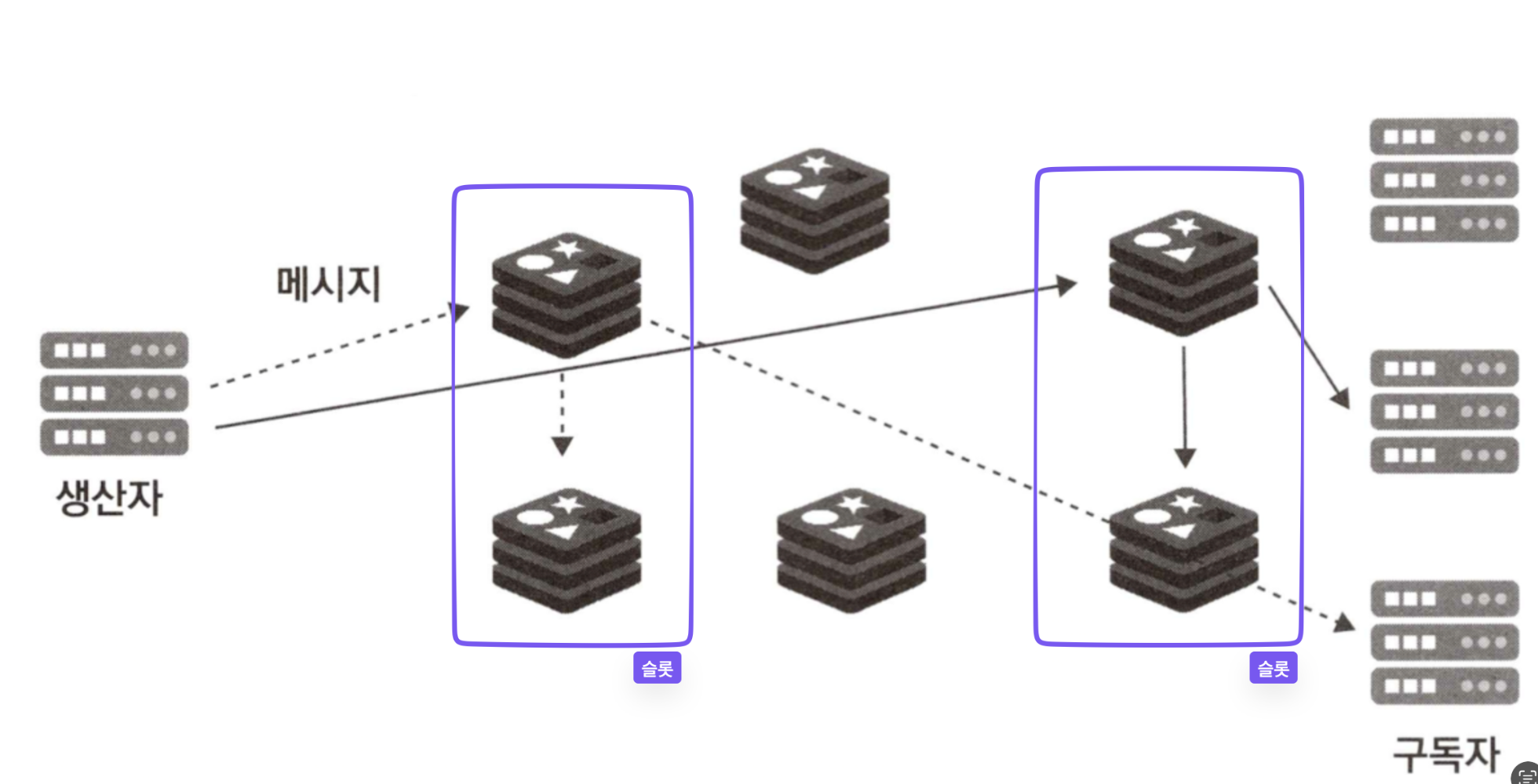 - pub/sub으로 메시지를 발행하면 클러스터의 모든 노드에 자동으로 전달된다.