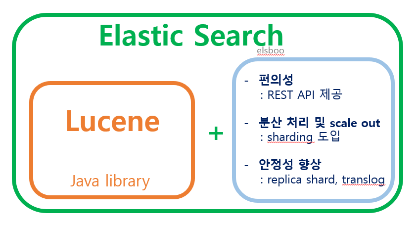 엘라스틱 서치는 현업에서 많이 쓰이고 있는 오픈소스 검색엔진이다. 역색인 구조로 문서를 색인하며, 근실시간으로 문서를 검색할 수 있다. 하지만 색인, 검색 기능을 엘라스틱 서치에서 직접 구현하지는 않는다. 해당 기능은 루씬이라는 오픈소스 자바 라이브러리를 임포트하여 사용한다. 즉, 엘라스틱 서치는 루씬이라는 검색 라이브러리를 코어로 하여 이것에 REST API, 관리 기능 등 여러가지 편의 기능을 붙인 검색엔진이다.