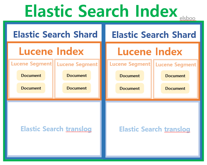 엘라스틱 서치 인덱스 ⊃ 샤드 ⊃ 루씬 인덱스 ⊃ 세그먼트 ⊃ 도큐먼트