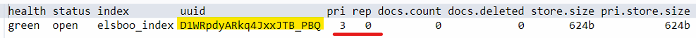 키바나를 통해 확인해보면, 인덱스는 primary shard 3개로 구성된 것을 알 수 있다.