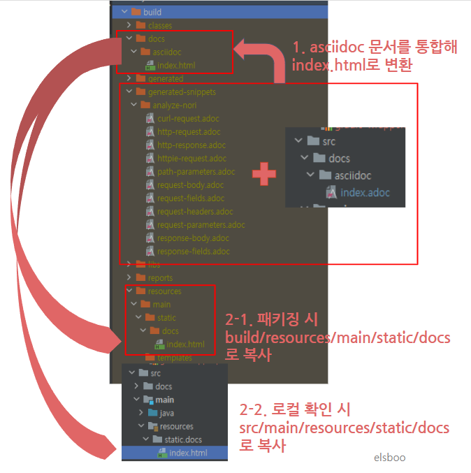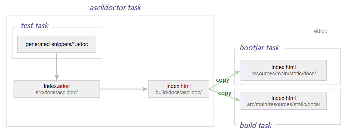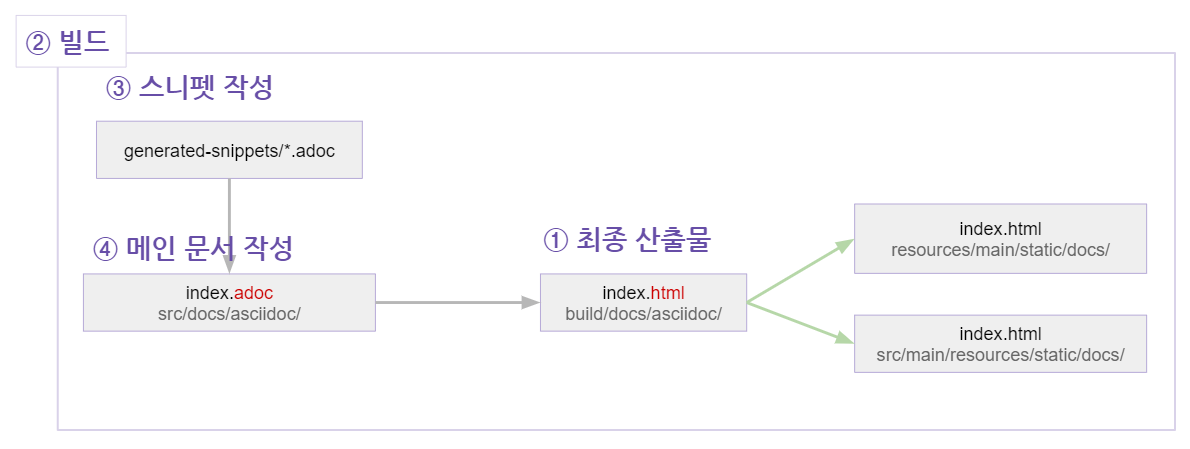 - [7] : asciidoctor task 실행 전에 test task 를 먼저 실행해 스니펫 문서를 미리 만들어둔다.