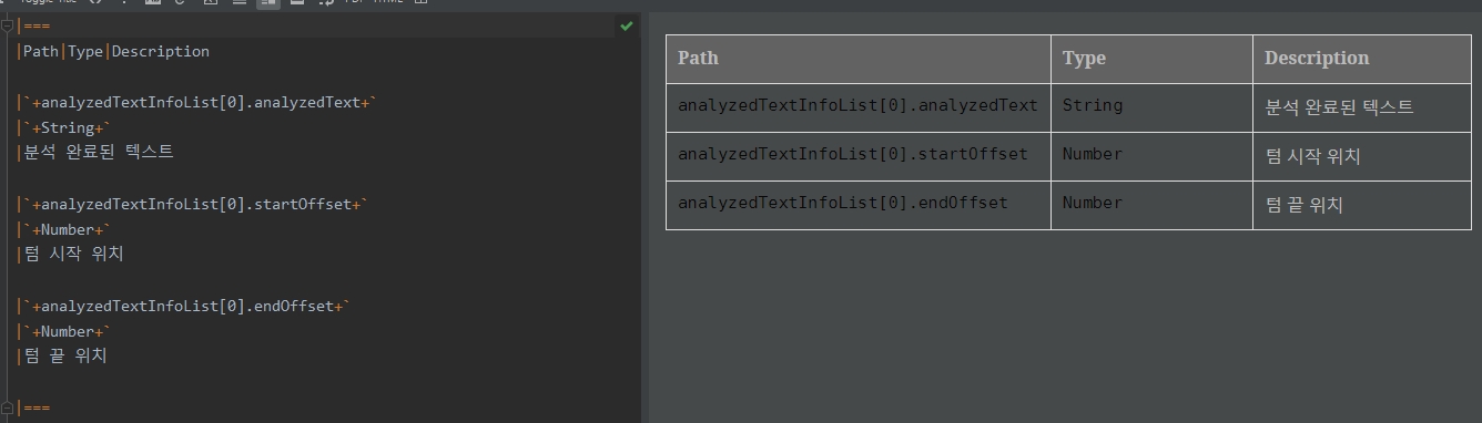 ◆ 하지만 스니펫 템플릿을 수정할 땐 mustache 랑 asciidoc 섞어서 사용하기 때문에 처음 작성하는 경우 신택스 찾아보는게 귀찮다..