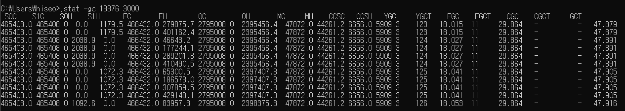 jstat -gc 3000 {PID}