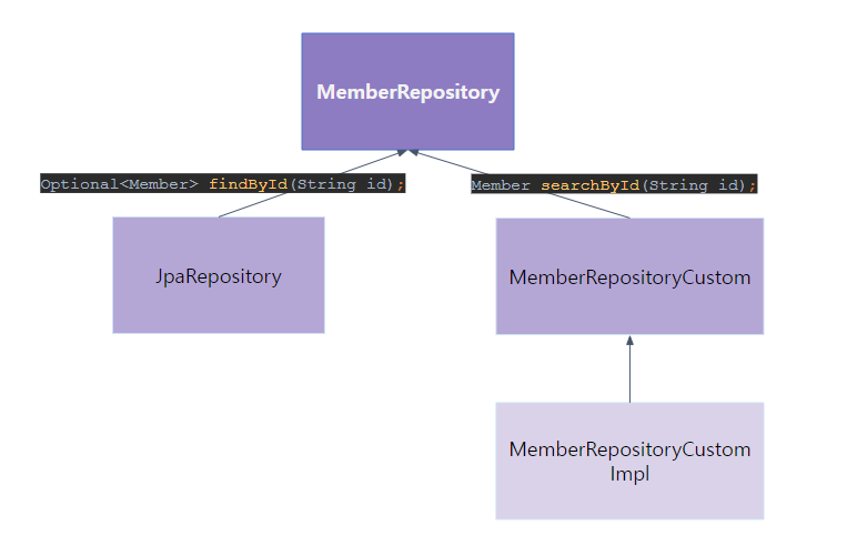 이제 MemberRepositoryCustomImpl 에서 querydsl 를 사용하는 구현체를 만들텐데, 그 전에 다이어그램을 쑥 훑어보고 가자!