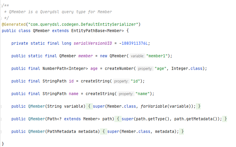 annotationProcessor 가 생성해준 QMember.java
