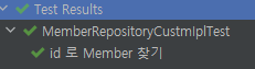 💡 어떤 글에서는 구현체인 MemberRepositoryCustomImpl 의 클래스명을 커스텀 interface 명 (MemberRepositoryCustom) + ‘Impl’ 로 해야 구현체로 인식이 된다 하지만, MemberRepositoryCustomImpl 를 다른 이름으로 변경해도 정상적으로 테스트가 성공하였다.