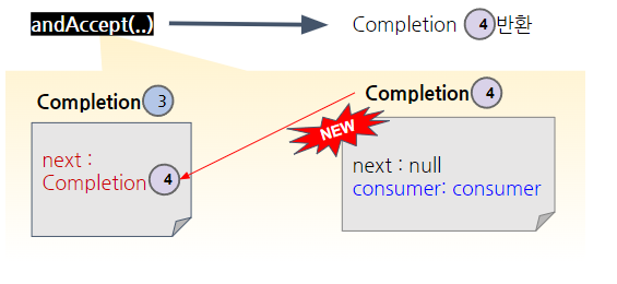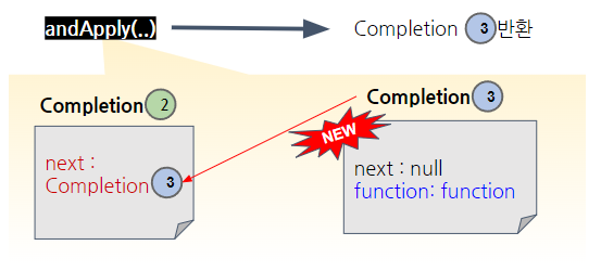 ③ andApply() : 3번 생성 후 2번 의 next 에 3번 설정 후 3번 반환