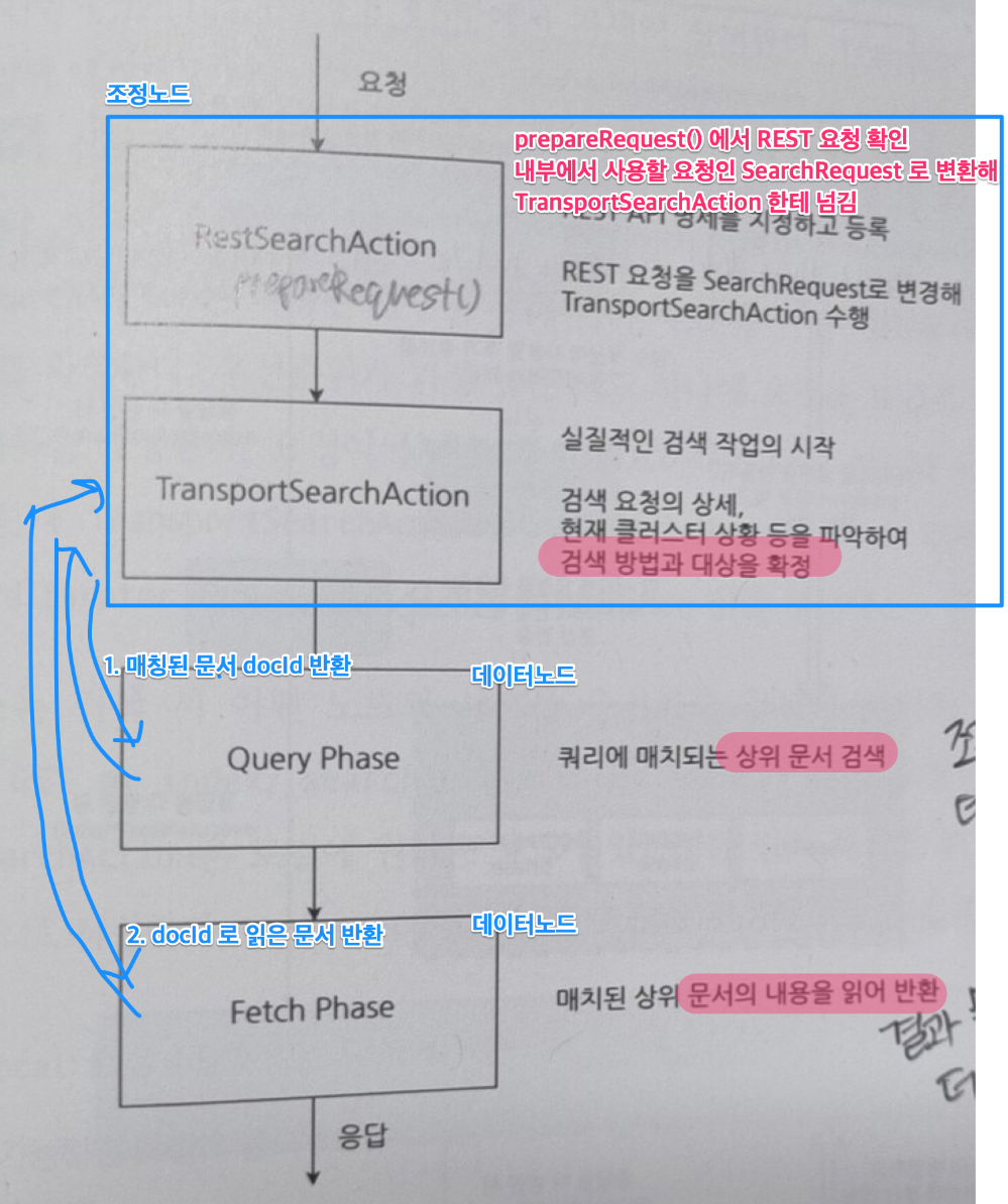 -검색 대상 샤드 별로 검색 요청 만들어 분산 전송한뒤 응답 수집하고 다음 페이즈로 이동