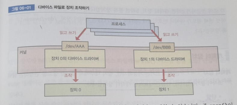 - 프로세스가 디바이스 파일을 사용해 디바이스 드라이버에게 장치 조작하고 싶다고 요청