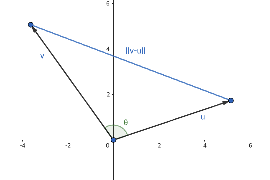(v-u)⋅(v-u) = ∥v∥^2 + ∥u∥^2 - 2∥v∥∥u∥ cosθ