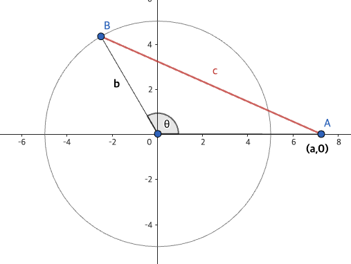 c = \sqrt{(bcosθ-a)^2+(bsinθ-0)^2}