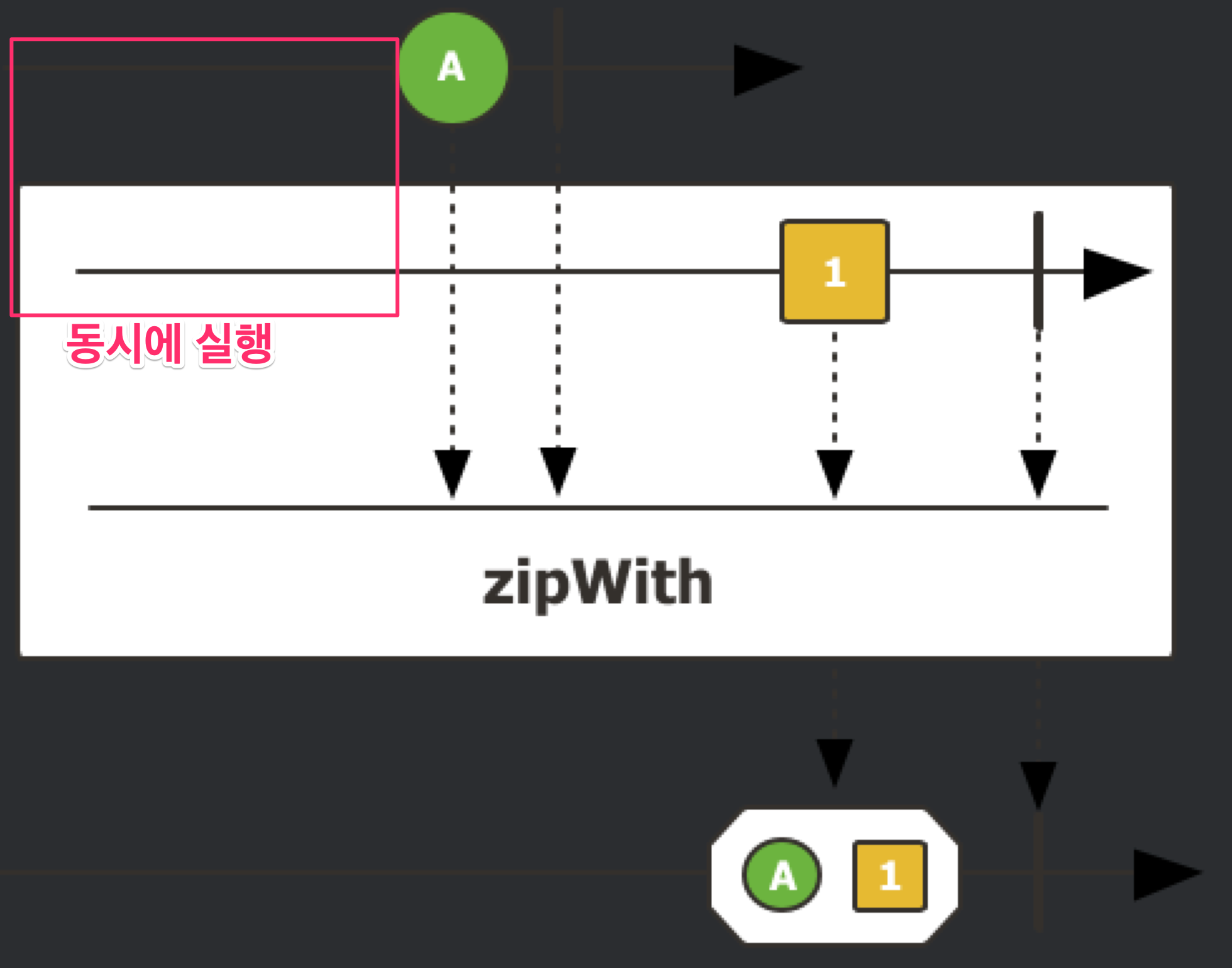 zipWith: 두 publisher 가 각각 실행하고 두 결과를 결합해 반환한다. (그래서 함께한다는 뜻으로 with가 붙은 것 같다)